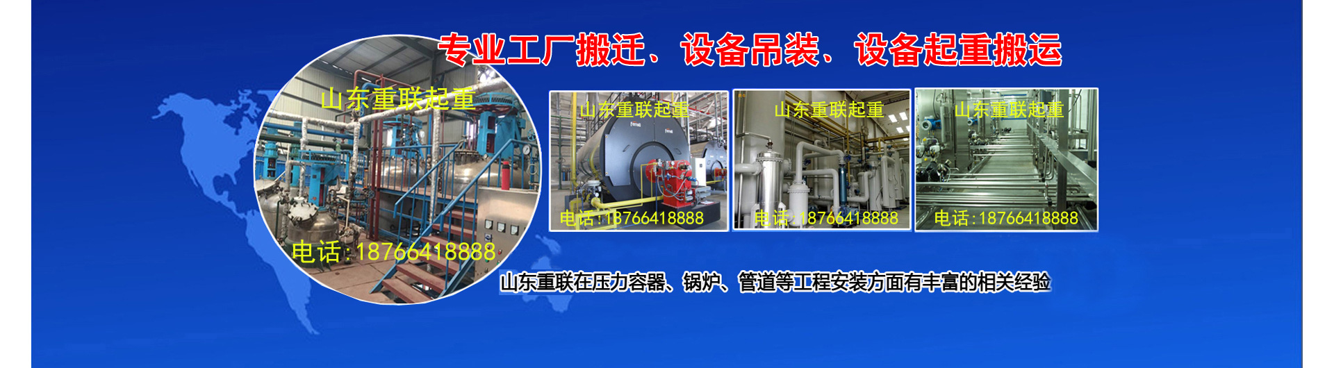 山東重聯(lián)起重安裝工程有限公司(原兔兔搬運(yùn)公司)成立于2004年8月。公司設(shè)立在濟(jì)南市高新區(qū)孫村鎮(zhèn)辛莊167號(hào)。注冊資金4000萬元,公司自有資產(chǎn)3000萬元是一家重資產(chǎn)運(yùn)營公司?,F(xiàn)已濟(jì)南地區(qū)規(guī)模較大的起重搬遷企業(yè)。 公司主營:工廠、企事業(yè)單位搬遷、1-600T各類設(shè)備起重吊裝搬運(yùn)、高空作業(yè)車租賃??筛鶕?jù)各種特殊搬遷起重作業(yè)需求,公司特別制定不同的搬遷起重專用方案和工具為客戶服務(wù)。公司可組織大型搬遷和起重吊裝施工方案的專家組論證。 公司擁有專業(yè)工程技術(shù)人員48人,外協(xié)80余人均有100萬意外險(xiǎn),其中擁有訓(xùn)練有素、經(jīng)驗(yàn)豐富、持特種操作證的30余人。包括叉車證、吊車證、司索工、信號(hào)工、電工、電氣焊工、安全員等專業(yè)的技術(shù)人員...